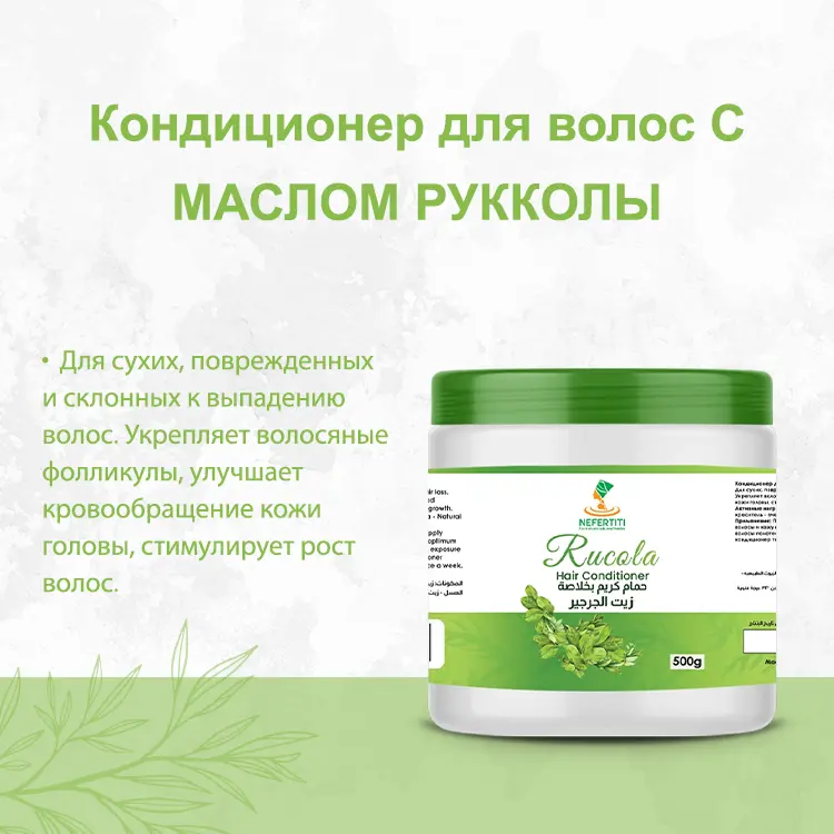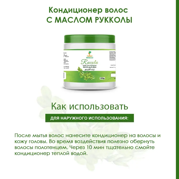 - Масло рукколы содержит большое количество витаминов, минералов, антиоксидантов и жирных кислот, что делает кондиционер с маслом рукколы идеальным средством ухода за волосами любого типа, но особенно за безжизненными, слабыми, склонными к выпадению