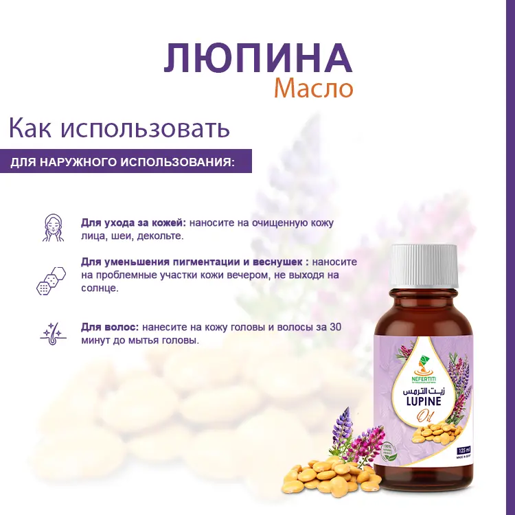 Масло люпина избавило от пигментных пятен на шее. Не ожидала такого эффекта.