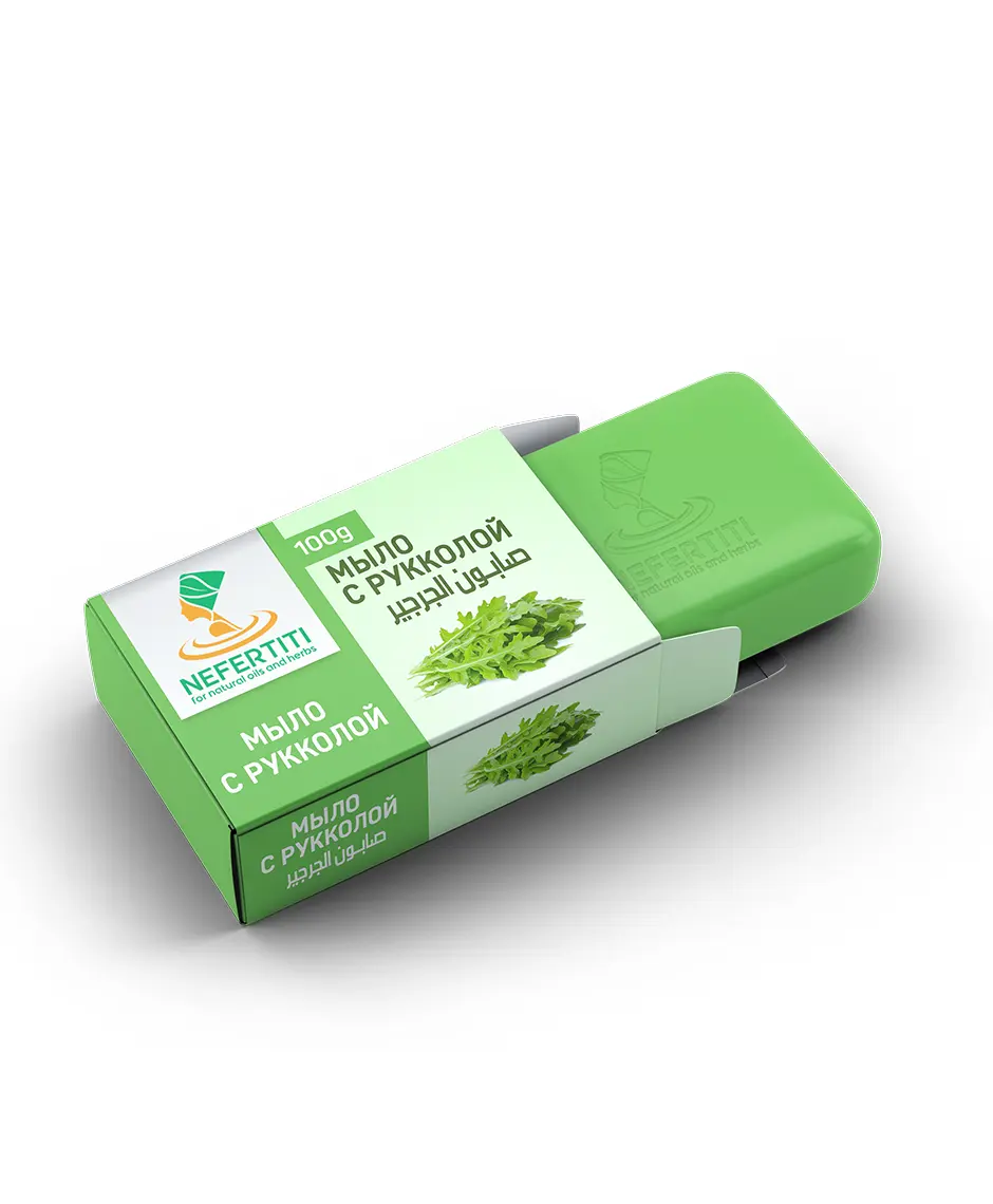 Мыло с маслом рукколы очень питательно для кожи и волос, поскольку содержит витамины А, С, В9, К и РР, минералы, включая кальций, железо, цинк, медь, марганец, селен, магний, натрий, фтор, калий и фосфор, а также жирные кислоты, аскорбиновую кислоту, каротиноиды, ретинол и целую армию антиоксидантов.
