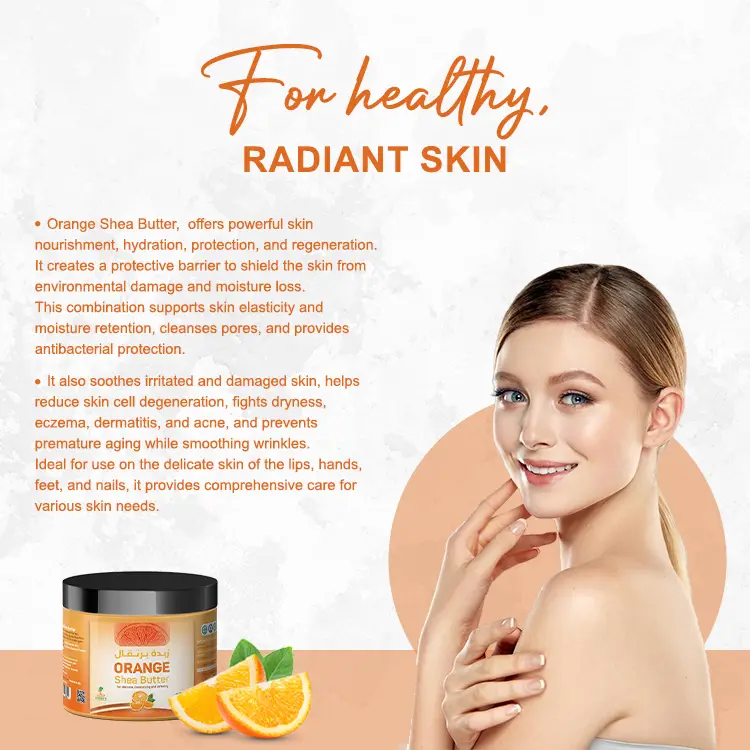 Da biste izbegli velike ožiljke nakon operacije ili strije tokom trudnoće, redovno koristite Shea puter sa uljem pomorandže. Shea puter sa uljem pomorandže održava elastičnost kože, čime se ublažava nastanak strija i grubih ožiljaka.